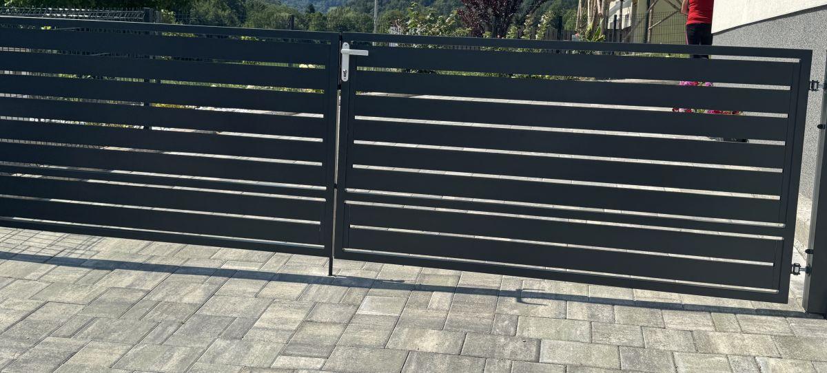 Masivna ograja in vrata lahko prilagodimo vašemu terenu, vašim željam in potrebam. Masivna vrata lahko uporabimo v kombinaciji s panelno ograjo 3D in 2D.